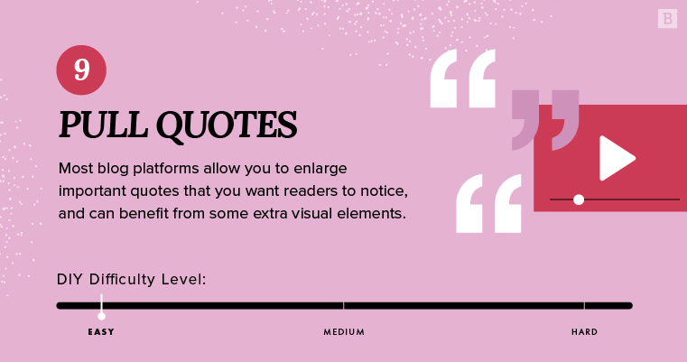 Most blog platforms allow you to enlarge important quotes that you want readers to notice. Prior to the internet, magazines and newspapers used pull quotes to attract reader attention. Pull quotes are still a useful tool, but they can benefit from some extra visual elements.