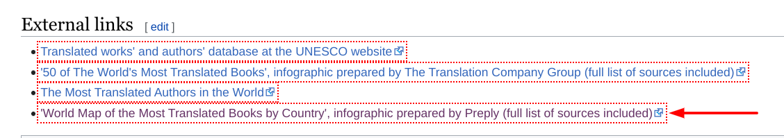 It wasn’t just the newspapers; Wikipedia (which has a notoriously high Domain Authority) also got in on the action, listing Preply’s graphic as a primary source for translates literary works: