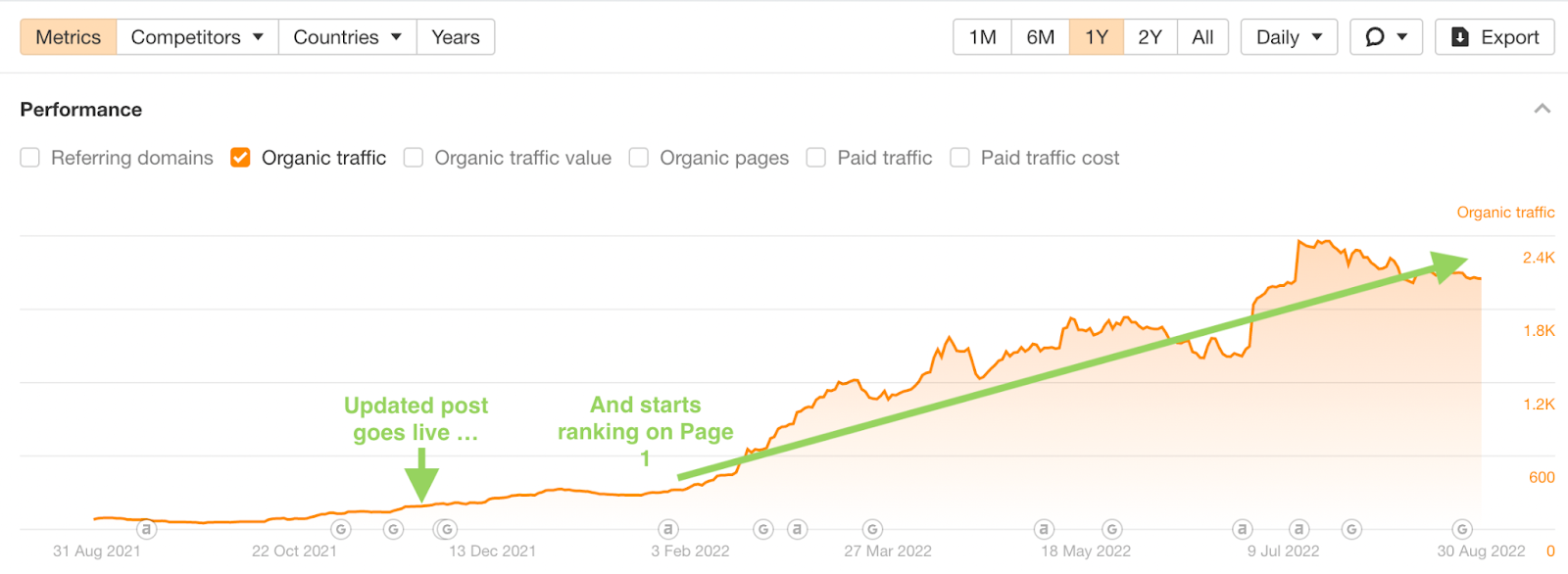 That’s in the ballpark of $30,000+ in traffic value over the last 6 months. Meaning, you’d have to pay more than $30,000 if you were buying this traffic through ads.