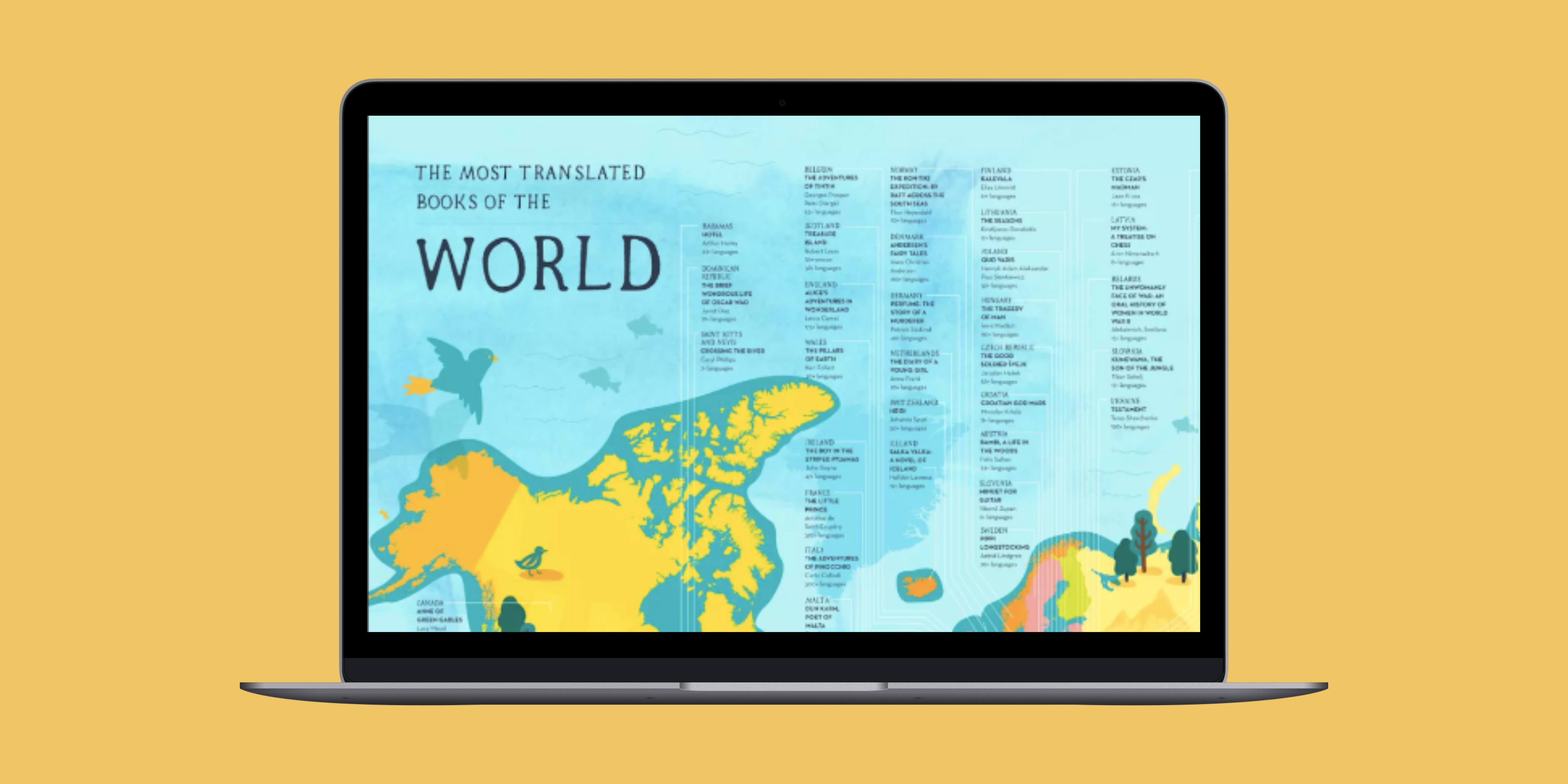We rose to the challenge and fitted the name of the country, the book, the author and the number of times it was translated onto the map for 150 countries.