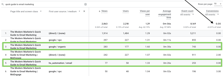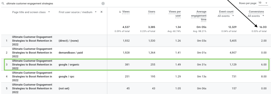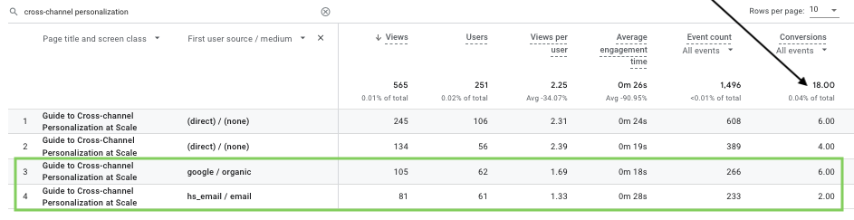 Users downloaded the eBook “Cross-Channel Personalization at Scale” 18 times in 2022. Google / organic drove 18% of the traffic, and email drove 14%: