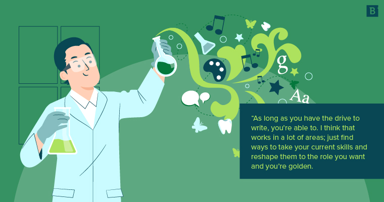 “At first, I suffered from so much imposter syndrome, doubting that my skills were applicable beyond the realm of scientific reports. But when I realized how integral writing was to every industry it was a breakthrough moment.”