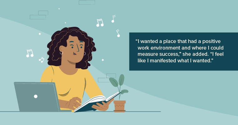 “I wanted a place that had a positive work environment and where I could measure success,” she added. “I feel like I manifested what I wanted.”