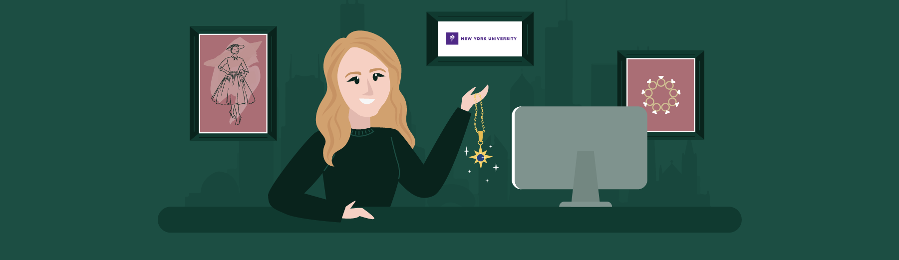 Cut scene to Young Jessica finding her way in the world through the streets of Chicago. Bright-eyed and hopeful, she studied theatrical costume design at DePaul University.