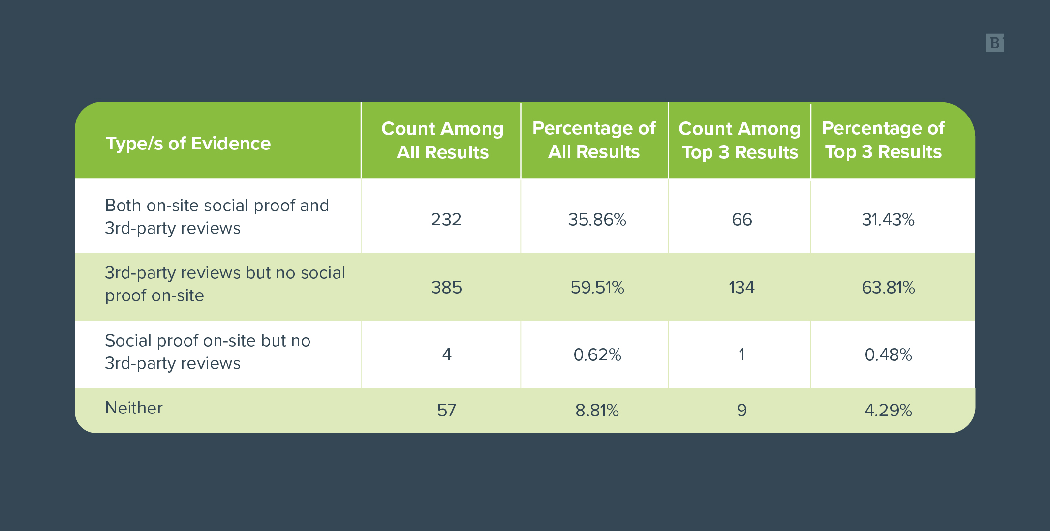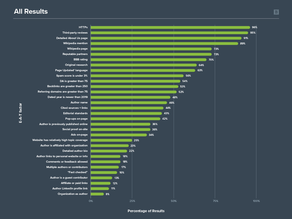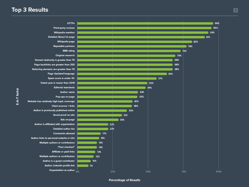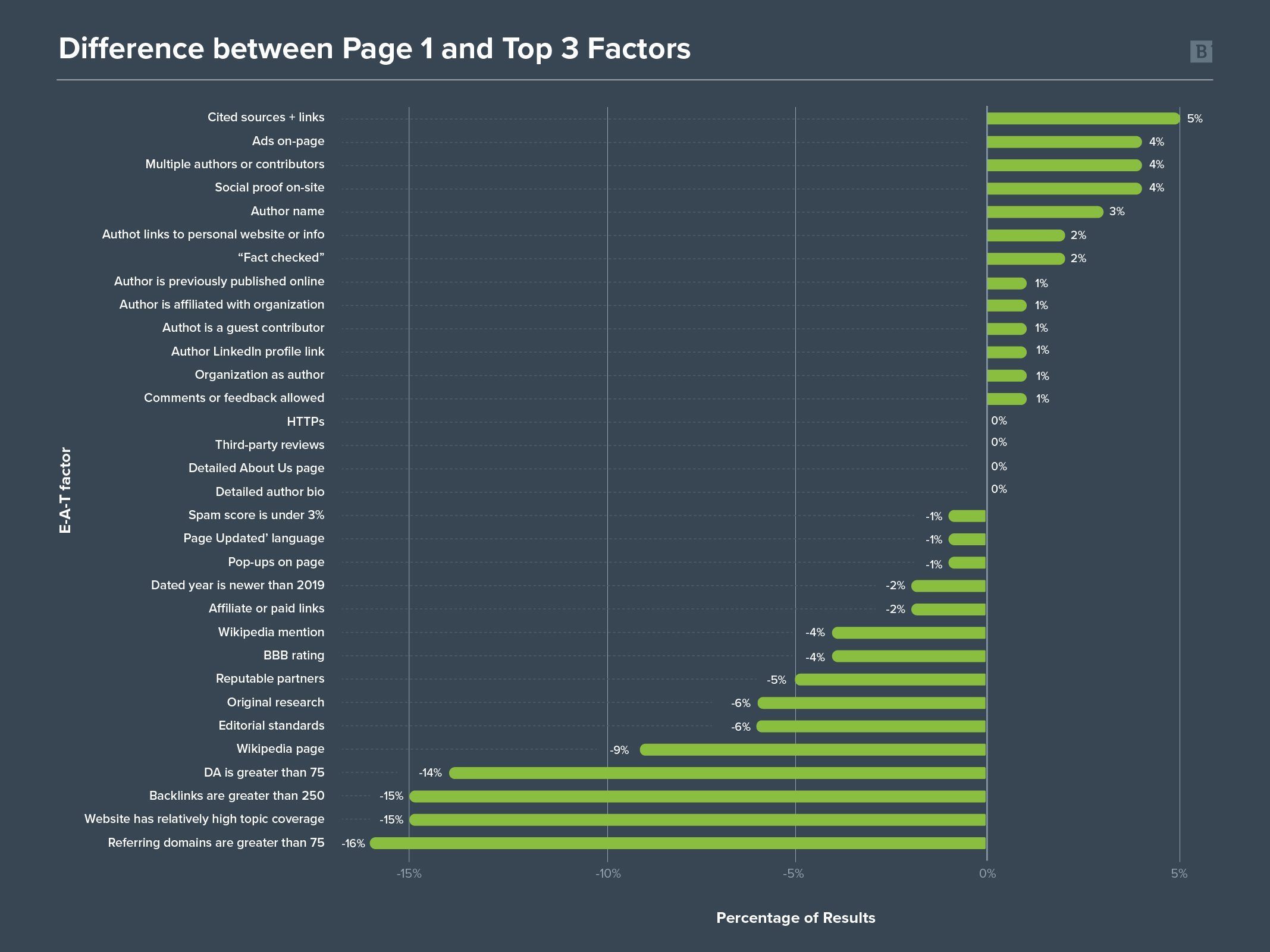 - Which methods of proving E-A-T are most prevalent on Page 1?
