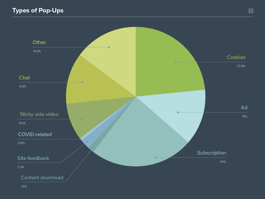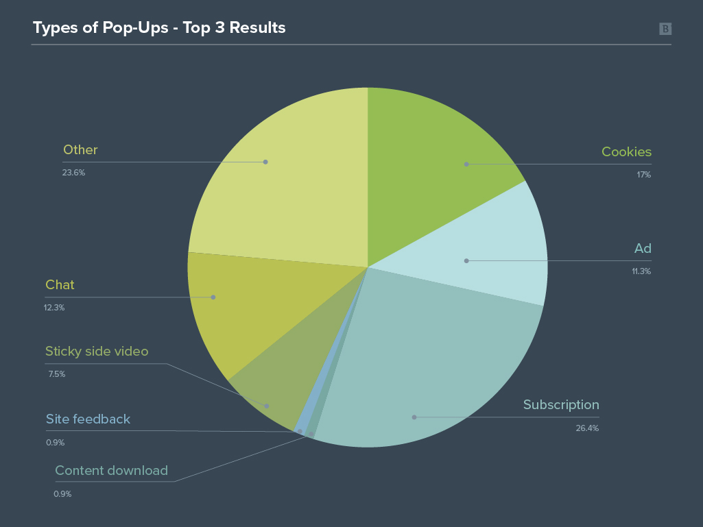 - Pop-ups on-page (of any kind — plus what kind they were).