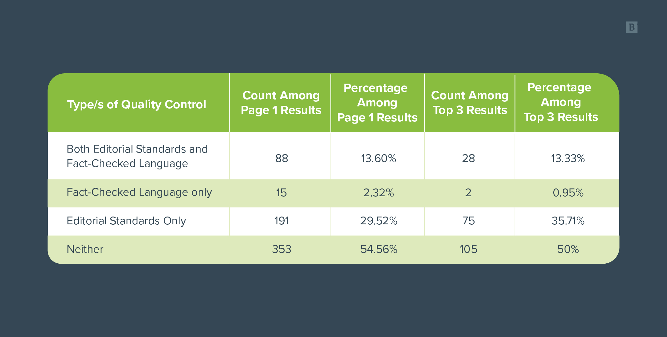 Only 16% of Page 1 listings had some type of language that indicated that the content had been fact checked.