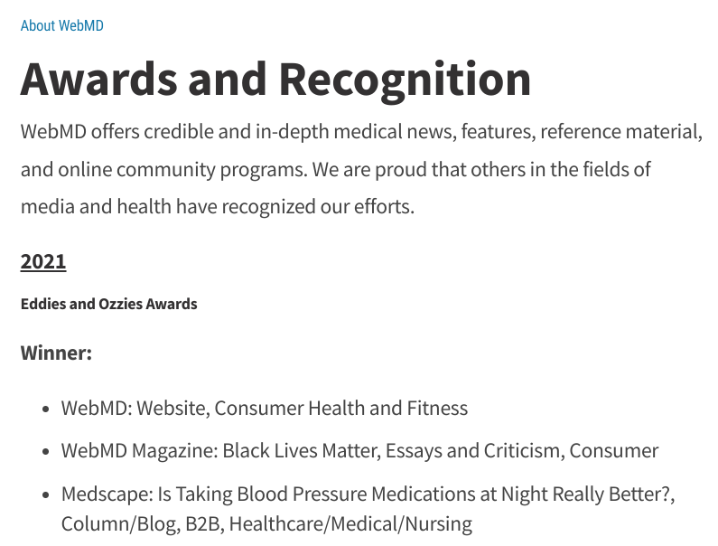 - Reputable partners (including press mentions they highlight, awards from external organizations — not including parent companies, e.g. Aetna & CVS).