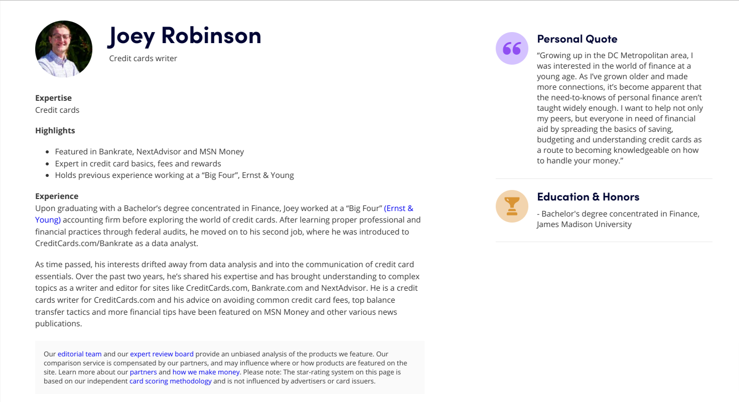You could handle author bios the same way for guest contributors as you do for your in-house experts, or you could structure them in a unique way. Either way, it’s probably worthwhile to include some type of biographic information.