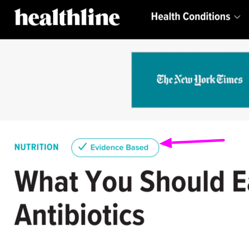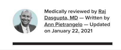 Some sites include tags at the top of their fact-checked articles that give us a clue as to how trustworthy the information is, like this one from Healthline: