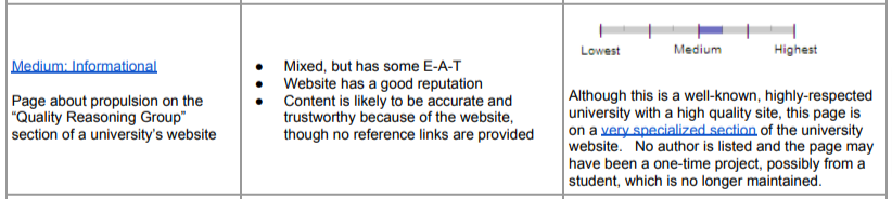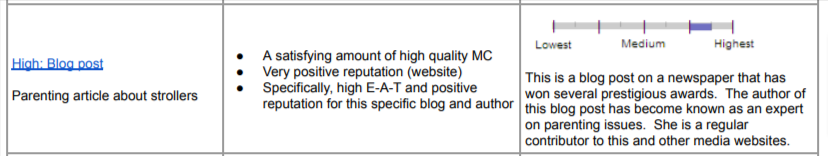 Google has a team of external Search Quality Raters who provide feedback on how well algorithm changes work. One aspect of their role is to evaluate the E-A-T of results found in SERPs. Google’s Search Quality Evaluator Guidelines outline how to do this. It’s no surprise to me that defining E-A-T depends on the topic and situation.
