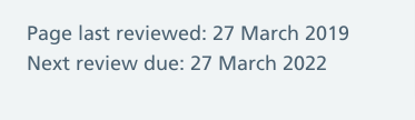 - “Page updated” language (including dating info e.g. “as of 2020”).