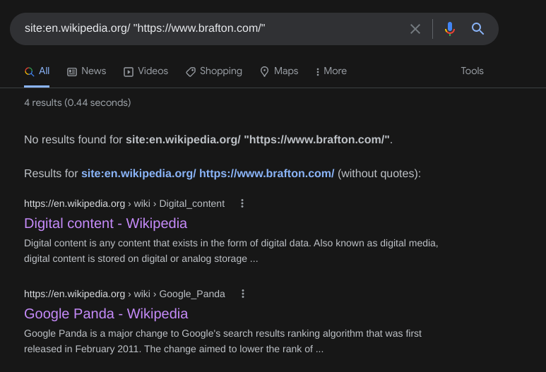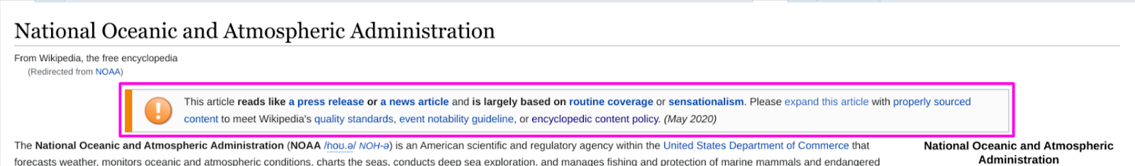 - Organization mentioned anywhere on Wikipedia (including in talk sections & citations).
