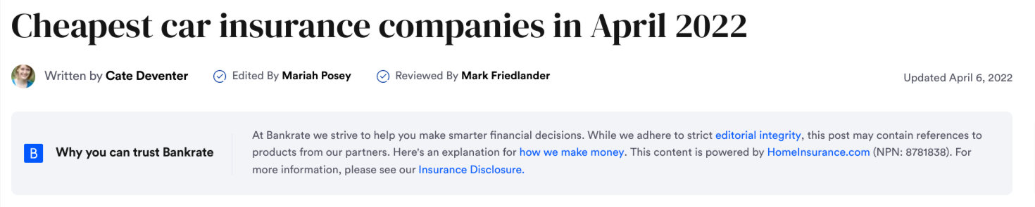 What it is: Some indication that the content on the page was vetted by an expert. This could be a line that literally says “fact checked” or a note that the content was “medically reviewed” or if there were “expert contributors” or something to that effect.