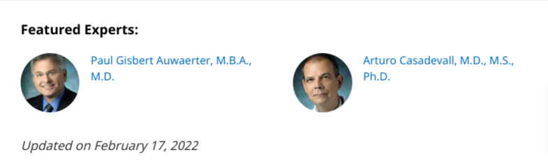 Here’s how the Mayo Clinic does it: At the bottom of their articles, they have a simple line that says “By Mayo Clinic Staff,” which links to their “Meet our medical editors” page.