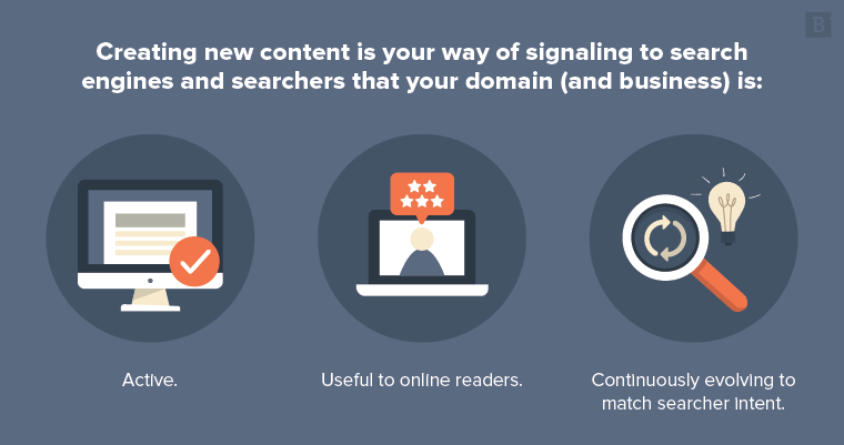 Creating new content is your way of signaling to search engines that your domain (and business) is: