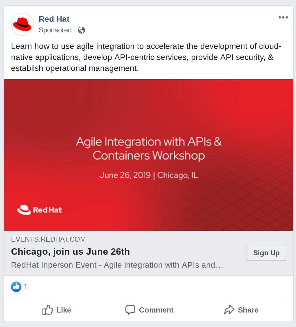 This example from software vendor Red Hat is typical of an in-feed ad: