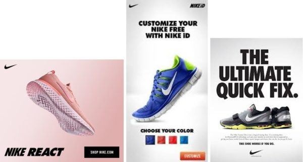 Plus, people are more likely to trust ads that feature consistent and reliable branding. These Nike display ads are a good example of brand consistency: