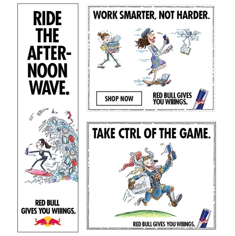 Don’t forget that you’re working with quite a tiny space on the screen. Keeping the design simple and copy brief will generally serve you better than overloading the ad with too many elements.