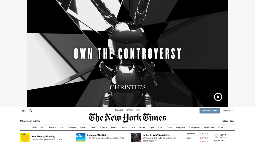 Rich media ads generally include videos, such as this one that revealed itself as soon as the New York Times homepage loaded: