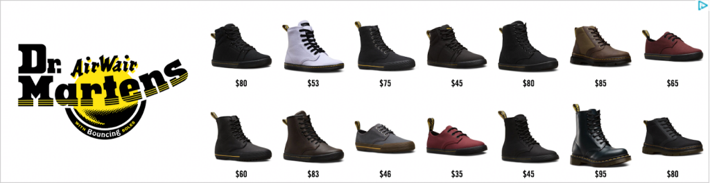 - Remarketing display ads: Remember how Dr. Martens retargeted me? That’s called a remarketing campaign, designed to target users who previously visited your site by using cookies to track their activity. The remarketing ad appears when they’re browsing on another website in an attempt to get users back to your website.