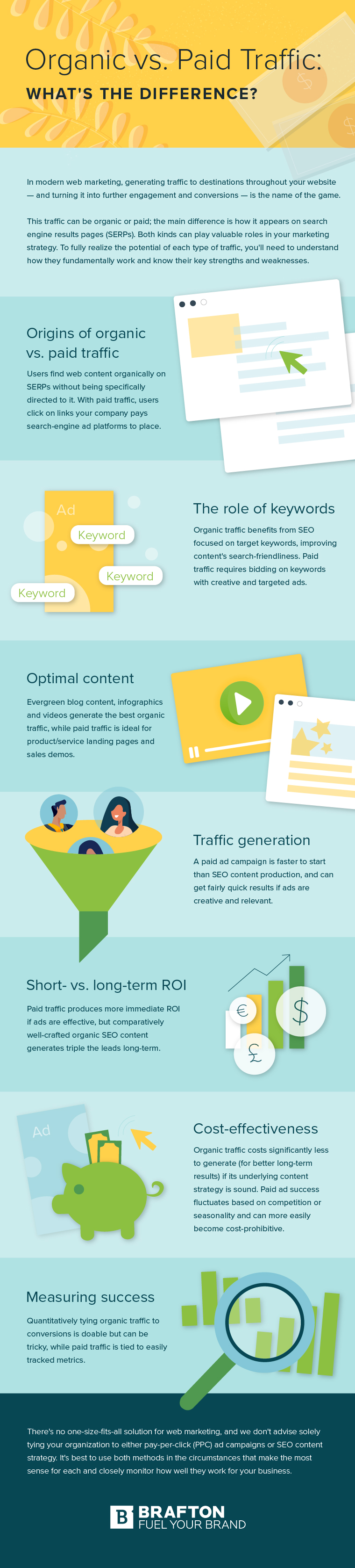 Conversely, if you’re looking to increase overall sitewide traffic, create shareable content for social media and distribute relevant materials to leads over email, then organic marketing is your surefire bet. You might want to ask yourself the following questions: