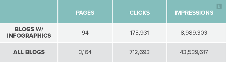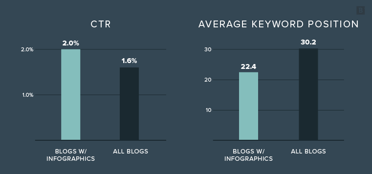 These facts were a little less surprising since we typically only add infographics to our best-performing blog posts. And the top performers are usually selected based on how much traffic they drive (and CTR and keyword position make a big difference in that performance).