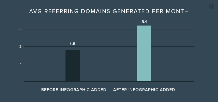 Takeaway: Blogs with infographics generate nearly twice as many new referring domains per month as those without.