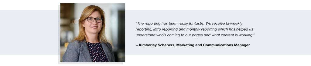 This example demonstrates a few best practices. First, we’ve attributed the quote to a real person — and, more specifically, someone who is a peer of our target audience members. Next, we added a photo of our client to show the reader there’s a real person speaking. When choosing the quote itself, we picked something specific that demonstrates the value in our reporting. Finally, we used a little formatting to separate this piece of text from the rest of our copy to attract the reader’s eye.