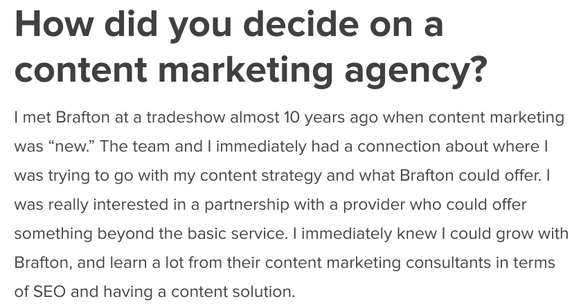 The example below comes from a Q&A testimonial featuring the founder of Pregnancy Magazine, in which we talk about how our businesses and relationship evolved over the years: