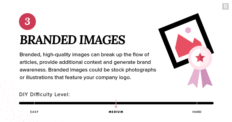 Branded images could be stock photographs or custom illustrations that feature your company logo. They can help lend a cohesive look and feel to your website. Keep your brand colors in mind when using images in your content.