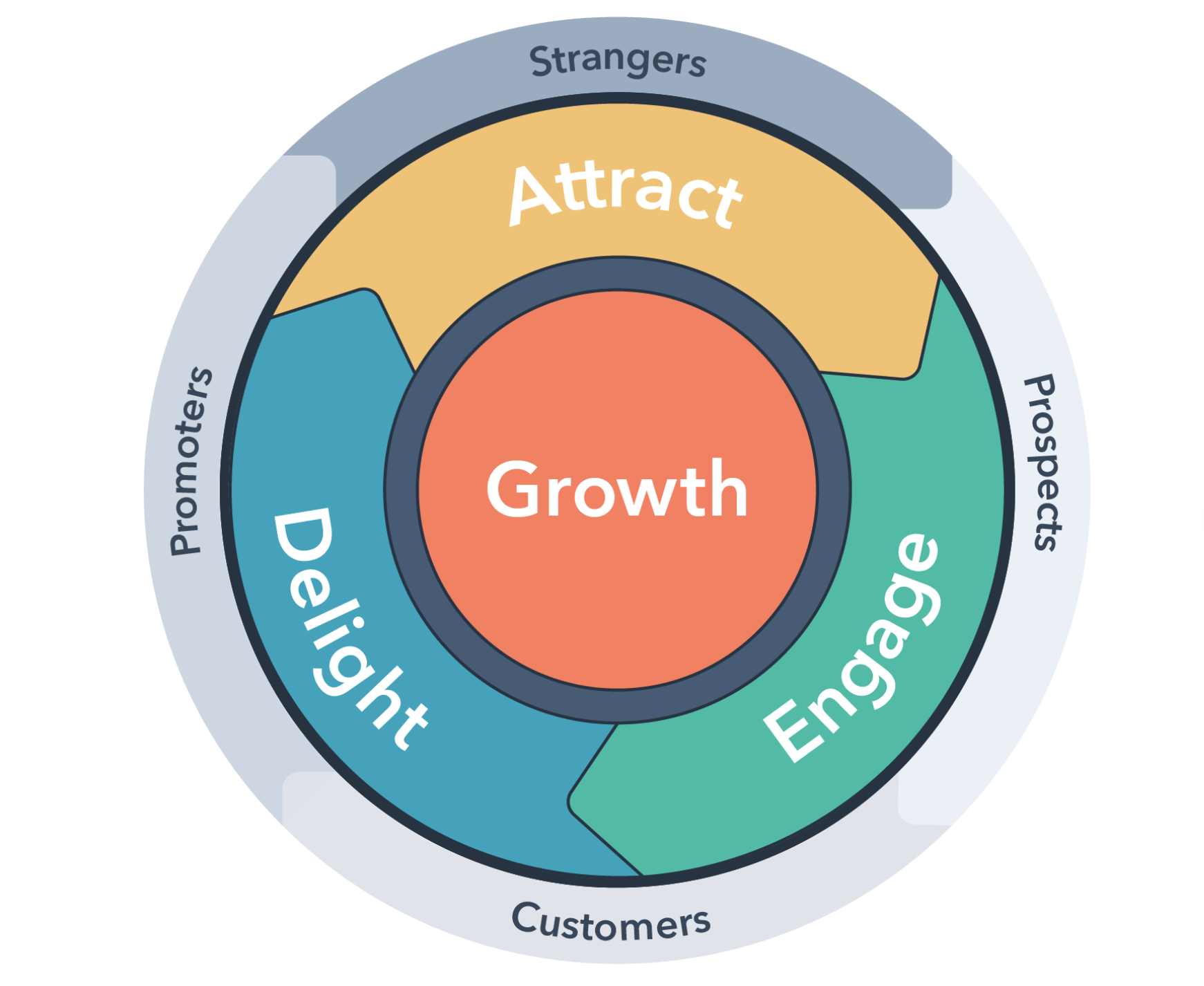The Flywheel model visualizes this by showing that delight feeds into attraction – where customers become promoters.