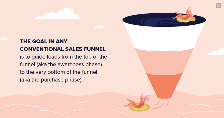 The goal in any conventional sales funnel is to guide leads from the top of the funnel (aka the awareness phase) to the very bottom of the funnel (aka the purchase phase).