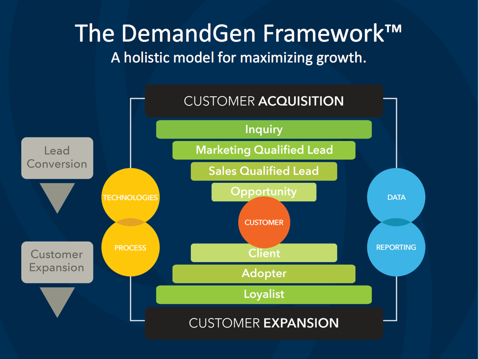Some marketers have attempted to capture a little bit more detail in an hourglass-shaped sales funnel. This is sometimes referred to as the “demand generation funnel”: