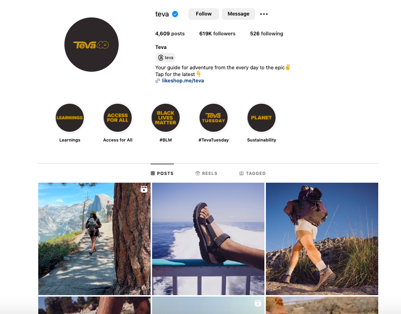 Teva, Expedia and Mindbodygreen are all great examples of brands with excellent Instagram profiles.
