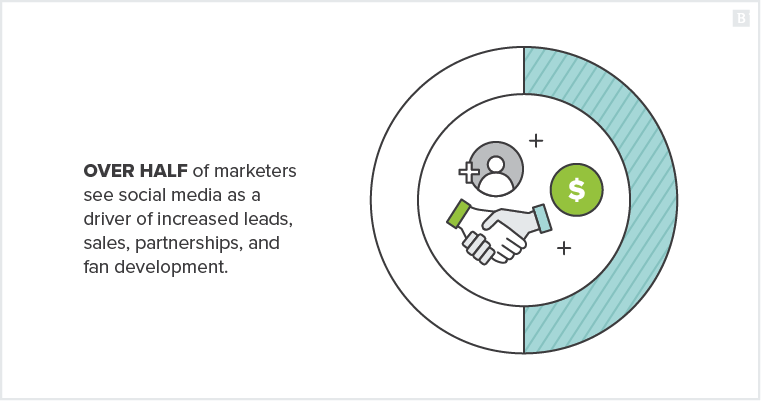 - Over half of marketers see social media as a driver of increased leads, sales, partnerships, and fan development.