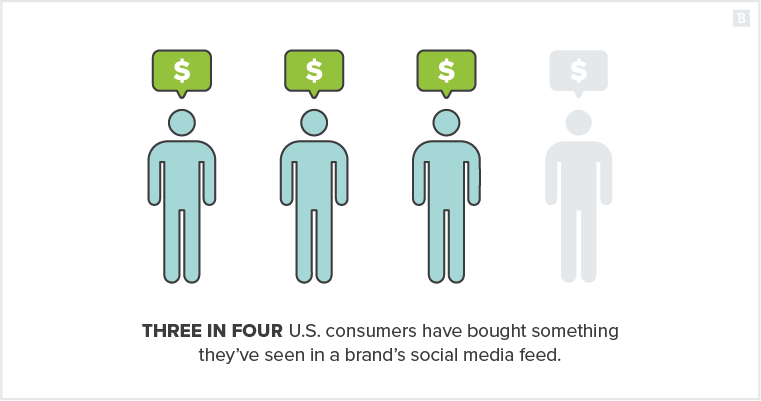 - Three in four U.S. consumers have bought something they’ve seen in a brand’s social media feed.