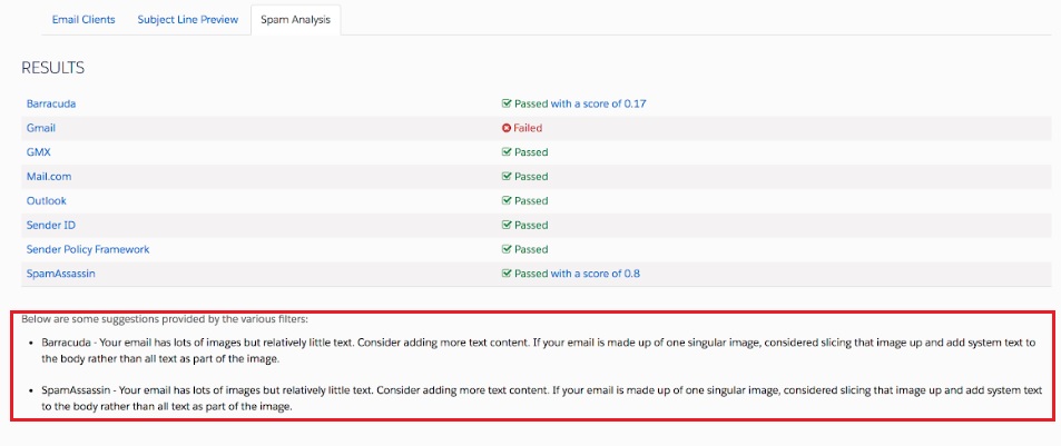 You’ll also receive some free suggestions for how to improve your email and to avoid getting caught in spam filters: