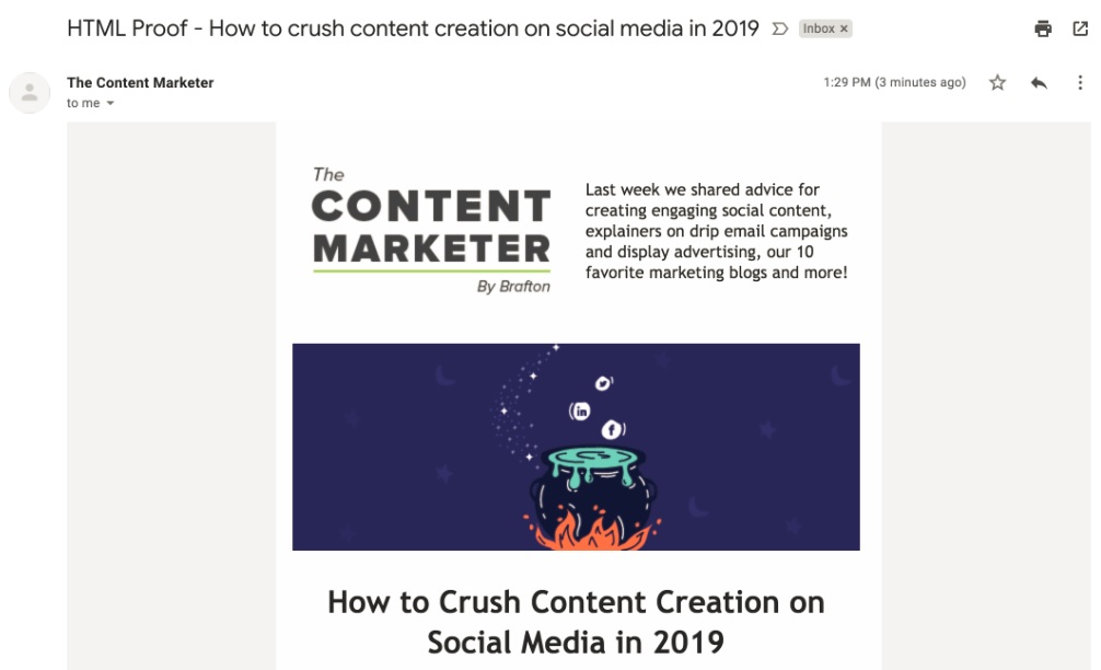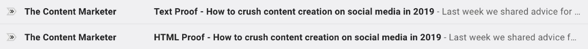 This is also the stage where you’ll want to “sync” your HTML and plain text proofs. Send yourself a copy of each version, open them and take a look to see that they’re conveying the same information, even if one is more visualized than the other: