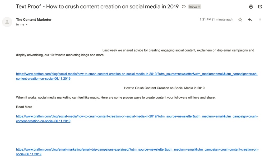 This step may seem intuitive in thought, but, depending on your email marketing tool, your newsletter may not automatically include things like metadata, links that open in new windows, CTAs that direct readers to a gated page, etc. These are often tasks you need to manually insert, double check and test for.