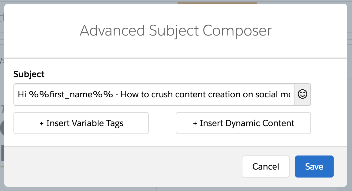 Pardot refers to these as variable tags. You decide the variable, in this case, the subject, or recipient. Then the system crawls your email list to autopopulate your email with each recipient’s first name.