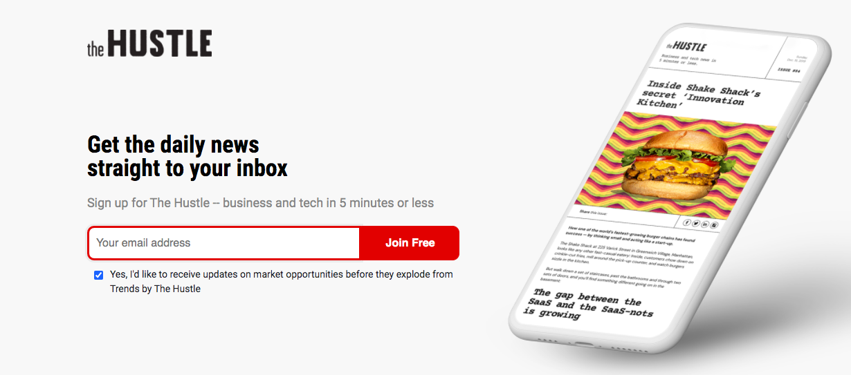 Do you have a side hustle? Well, The Hustle can help you get lightning-quick updates on market news and other trends, all in an easy-to-read format that doesn’t take itself too seriously. Such a unique approach can also serve as inspiration when using a newsletter name generator or brainstorming other creative newsletter name ideas.