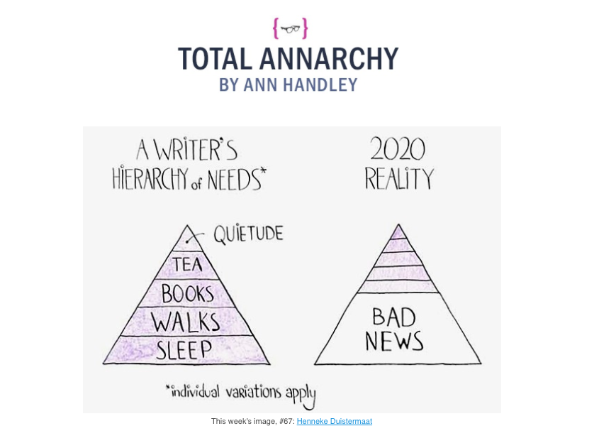 This newsletter title is a textbook example of everything done right.Ann Handley is a best-selling author, LinkedIn influencer, founder of MarketingProfs and a self-described “tiny home owner.” She’s also a leading mind in marketing, and readers who want a glimpse into her greatness can get it through her newsletter Total Annarchy.