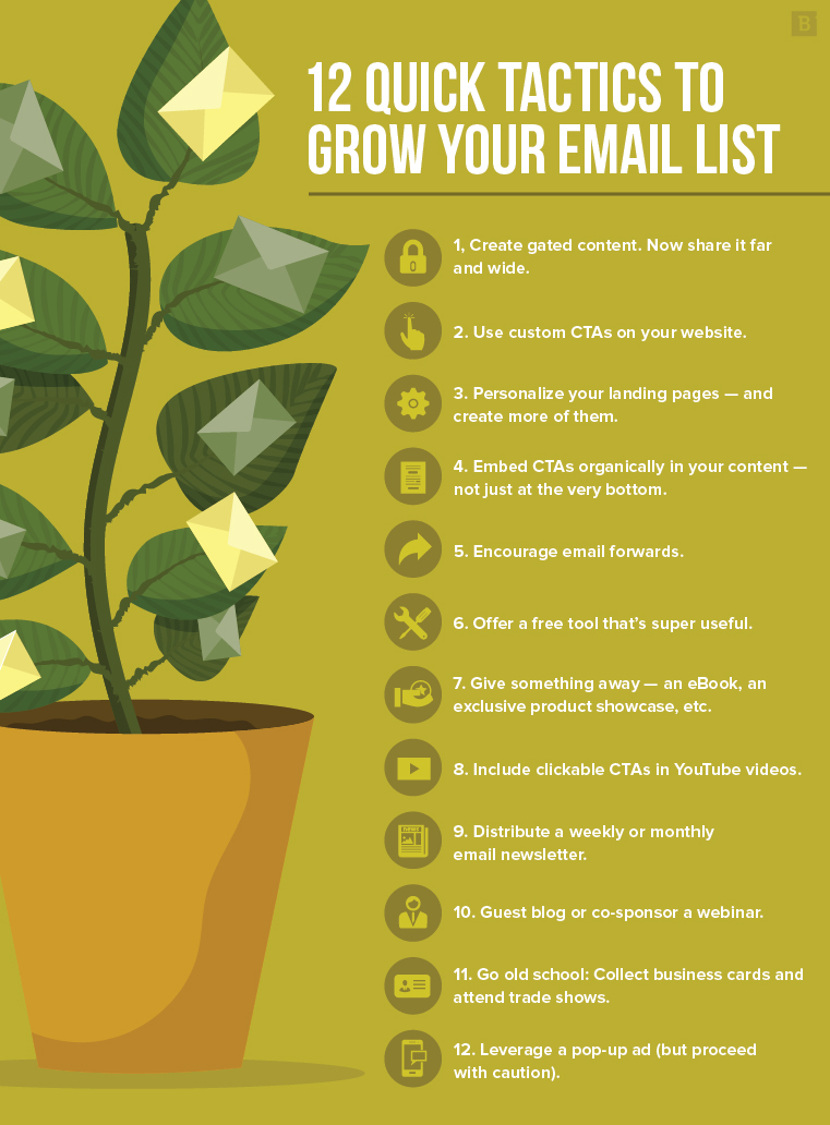 There are many ways to grow your email list. For example, you can add CTAs to your blog posts to encourage readers to sign up for your newsletter. Or, you could create gated content like eBooks, which people can download in exchange for their email addresses.