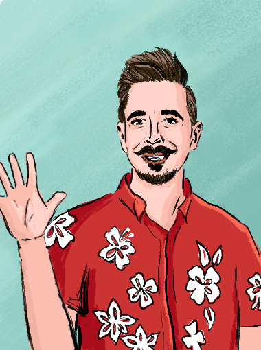 He walked in and gave us a high-spirited welcome, immediately putting us at ease. But he quickly realized he needed to change out of his tropical digs and into something a little more interview-worthy. Our timing perfectly coincided with a delivery of Whiteboard Friday shirts that he was giving a test drive. So he made a hilarious scene about the unlikelihood of someone starting an interview with a change of wardrobe, then he excused himself to doff his hibiscus threads.