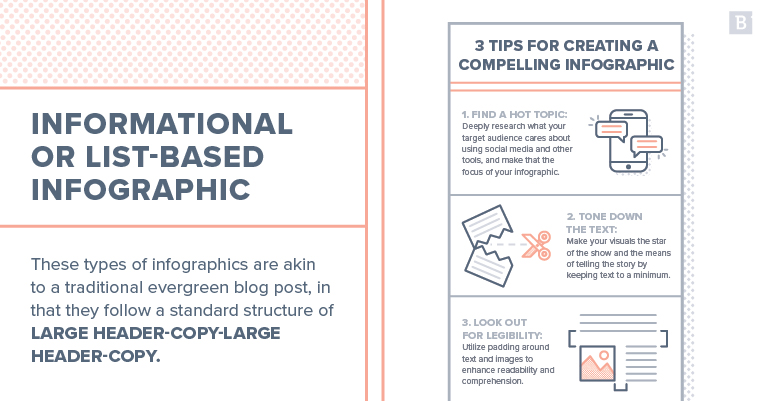 It’s important to align an infographic type with a goal you’re hoping to achieve while still having the asset complement other materials involved in your campaigns. With the right team and format, nearly any kind of information can be turned into an infographic.