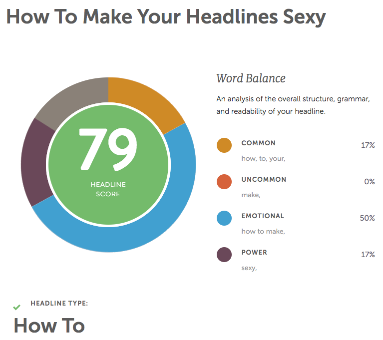 If you need a boost in confidence, run your title through the Headline Analyzer from CoSchedule. This handy resource rates your title on its ability to perform. The good news is that you don’t have to score a 100 to feel good about your title. As long as you’re in the green (70+), you’re good to go.