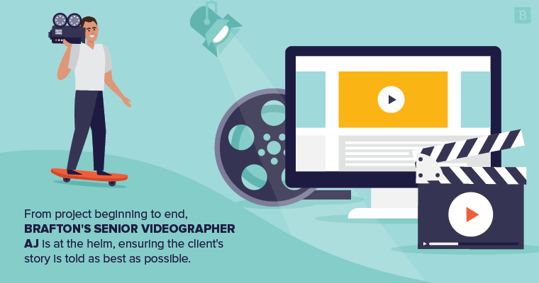 As Brafton’s Senior Videographer, AJ Muffett is the man behind the lens, as well as the editing desk. From project beginning to end, AJ is at the helm, ensuring the client’s story is told as best as possible.