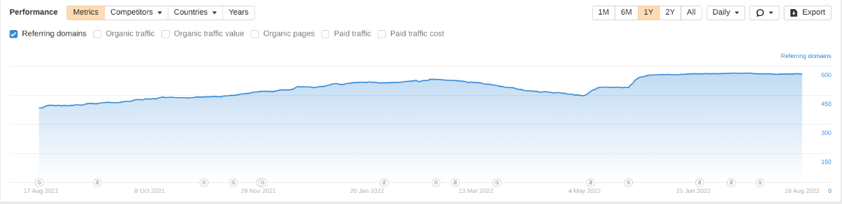 Overall we can see a steady increase in referring domains that will eventually lead to a higher Domain Authority.