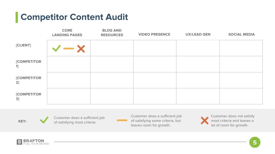 It’s also recommended to limit the number of competitors you’re investigating for the sake of time and to avoid broadening the scope of your audit.